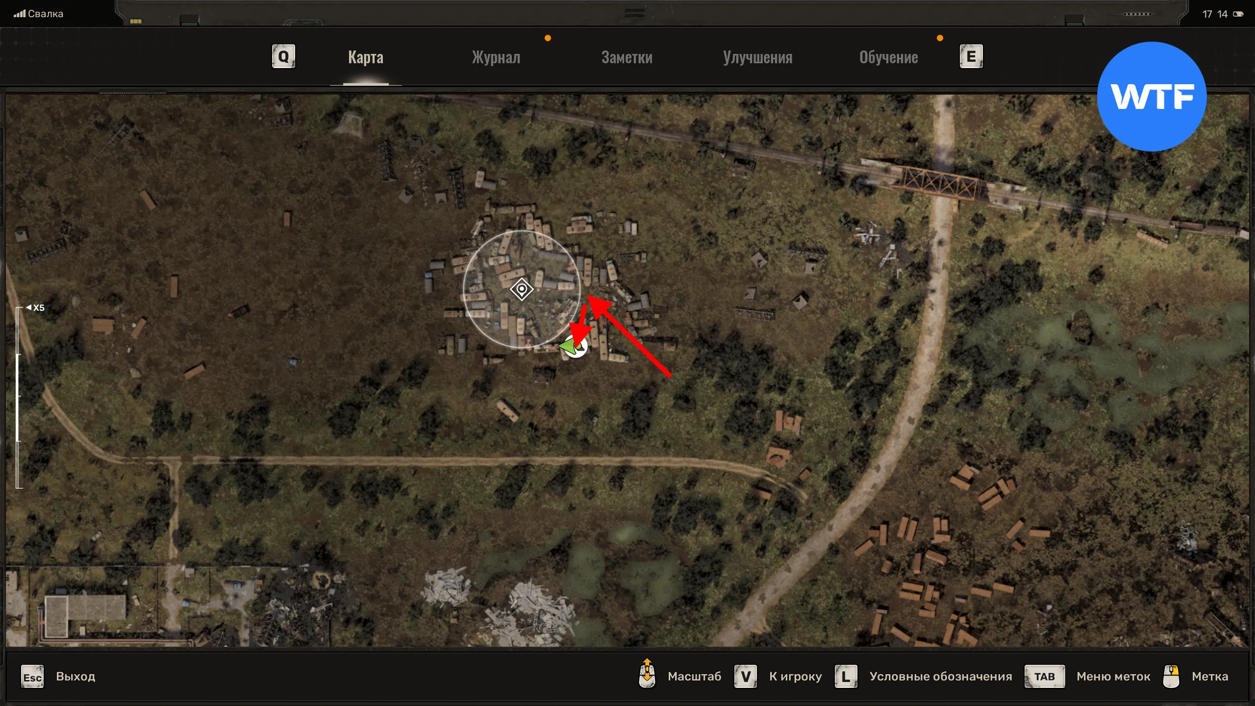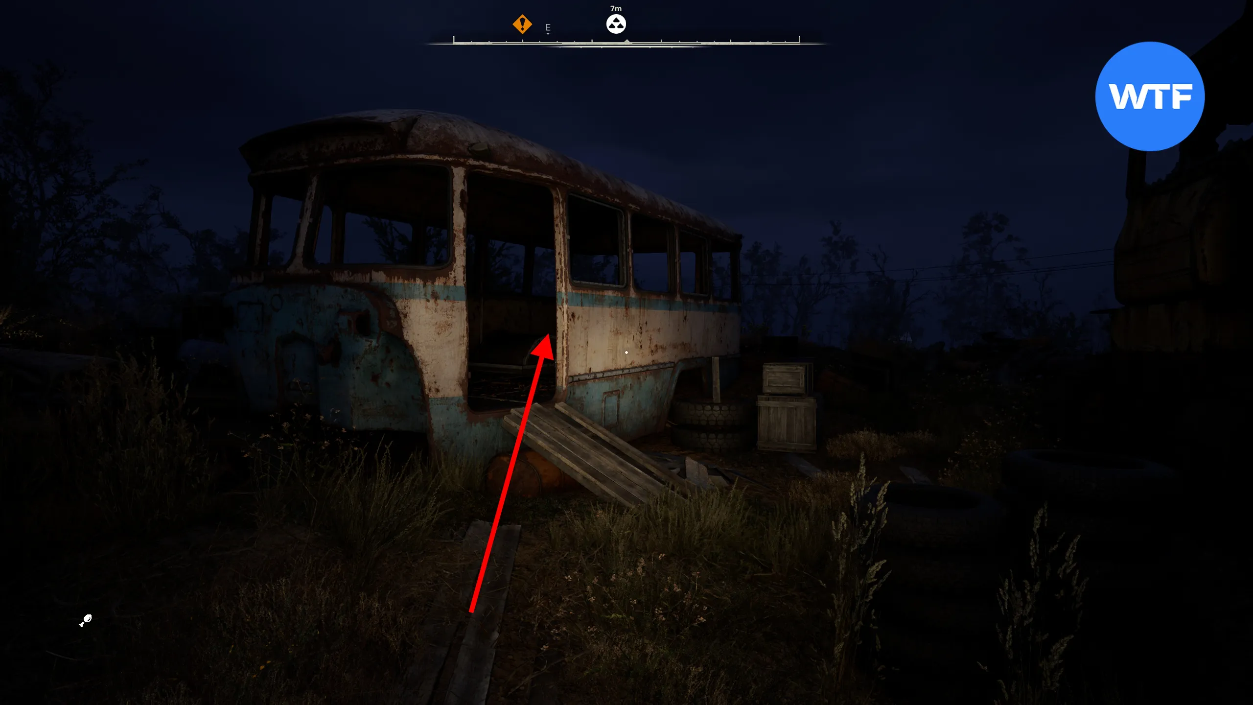 Пятый тайник журналиста находится в Лабиринте из сломанных машин к северо-западу от Террикона. Чтобы до него добраться, нужно зайти в эту локацию с юго-восточного угла, а затем залезть на крышу машины с синей продавленной мордой (см. скриншот 3).