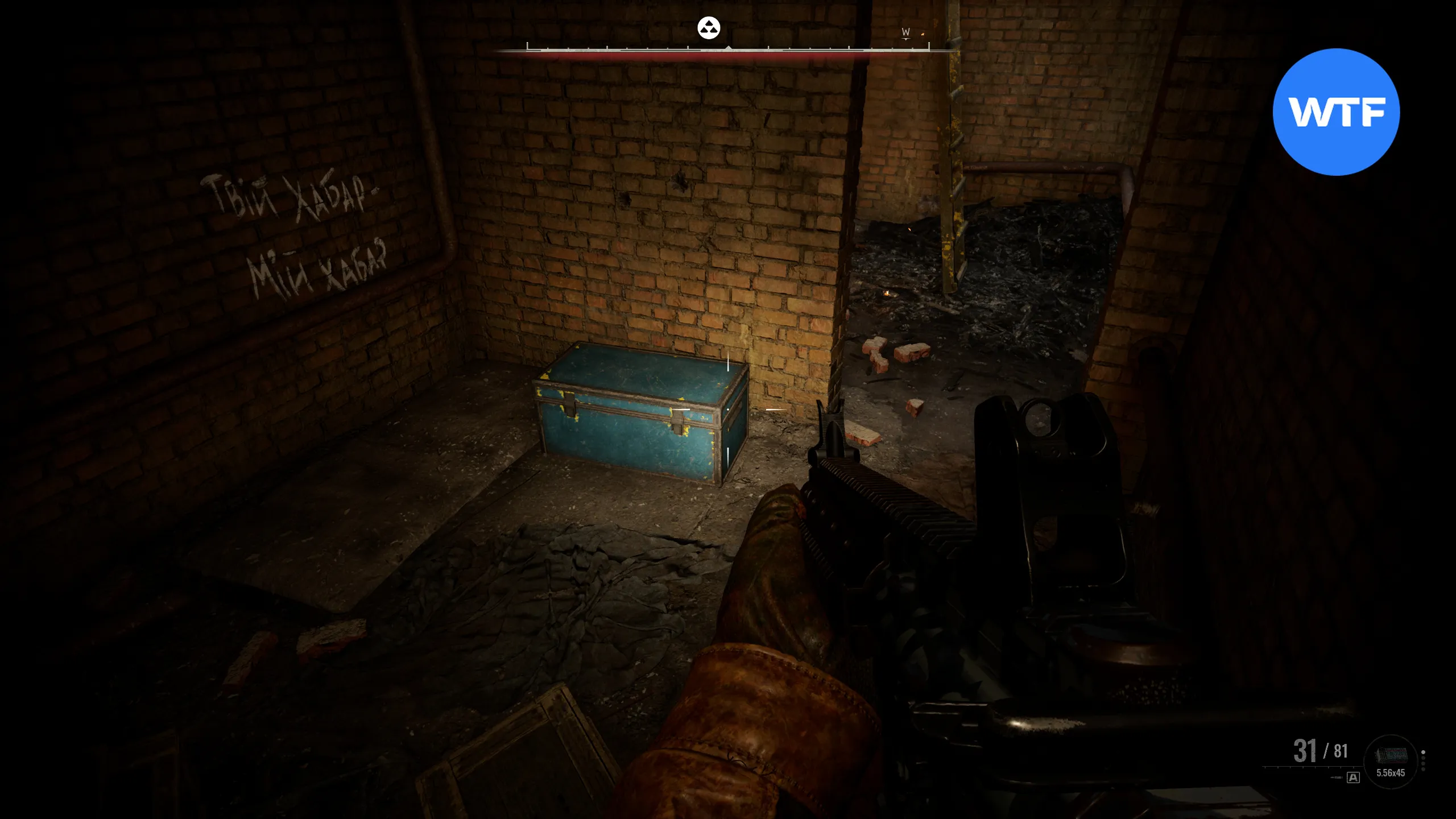Затем следуйте за маркером тайника на компасе, чтобы добраться до сундука. Внутри вы найдете штурмовую винтовку «Колыбельная» и 60 патронов 5.45*39 мм ПС.